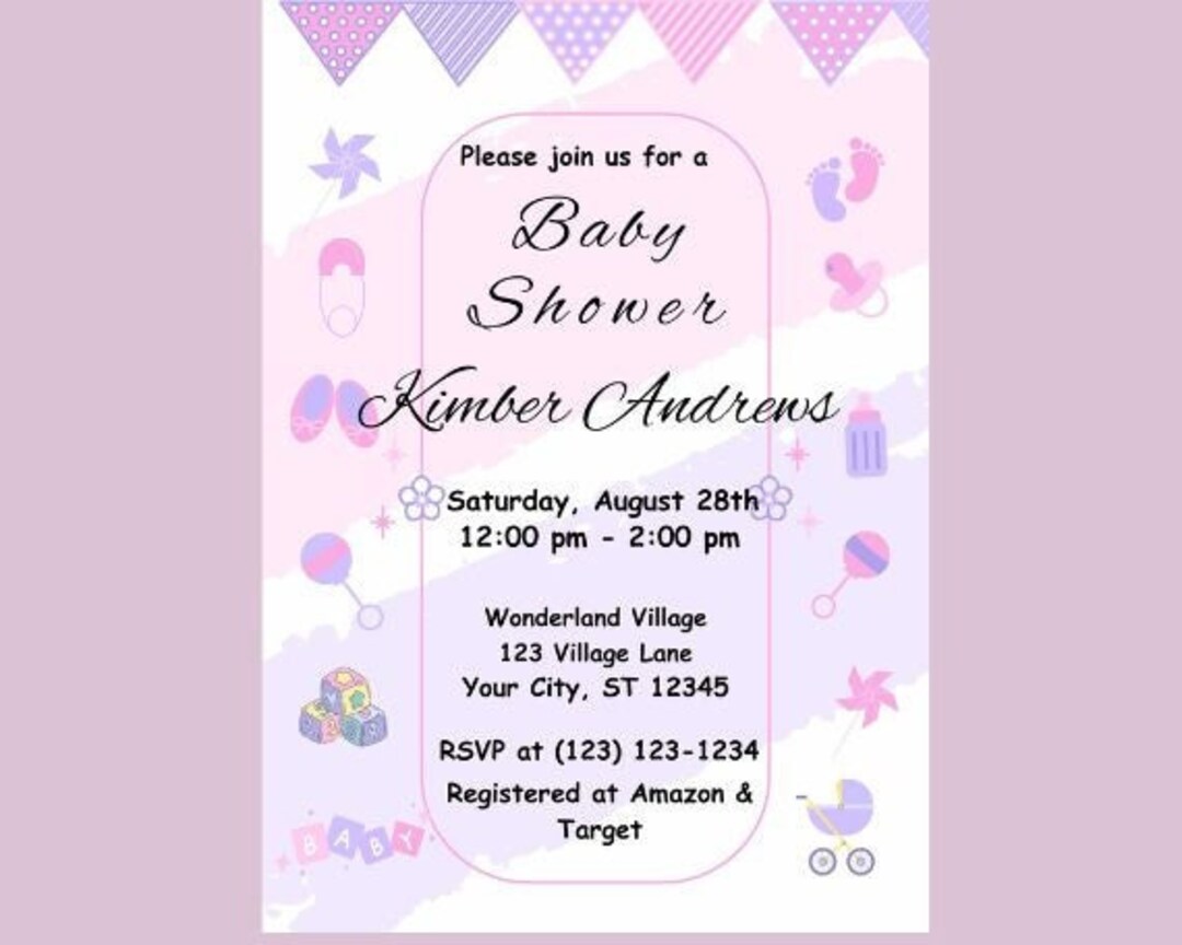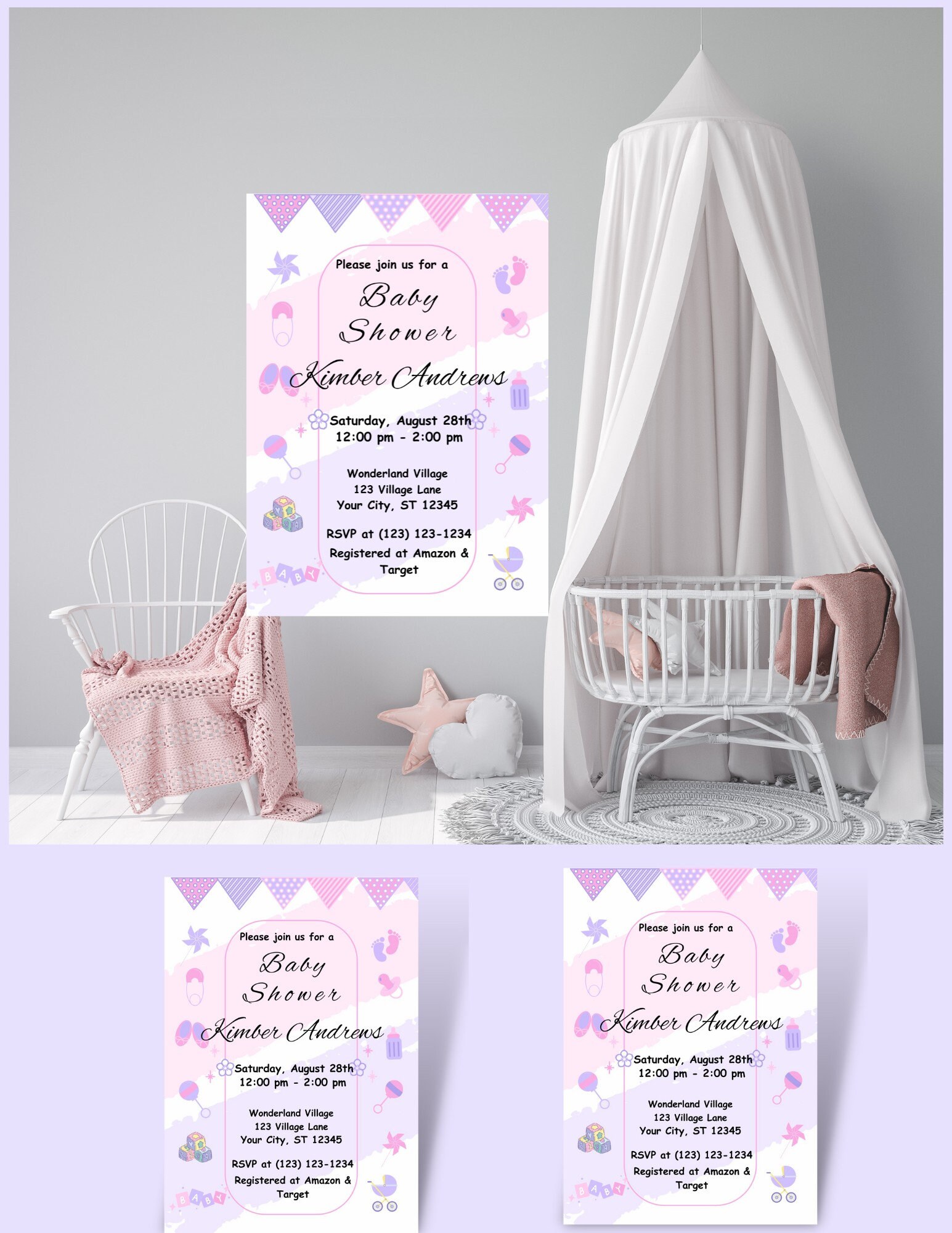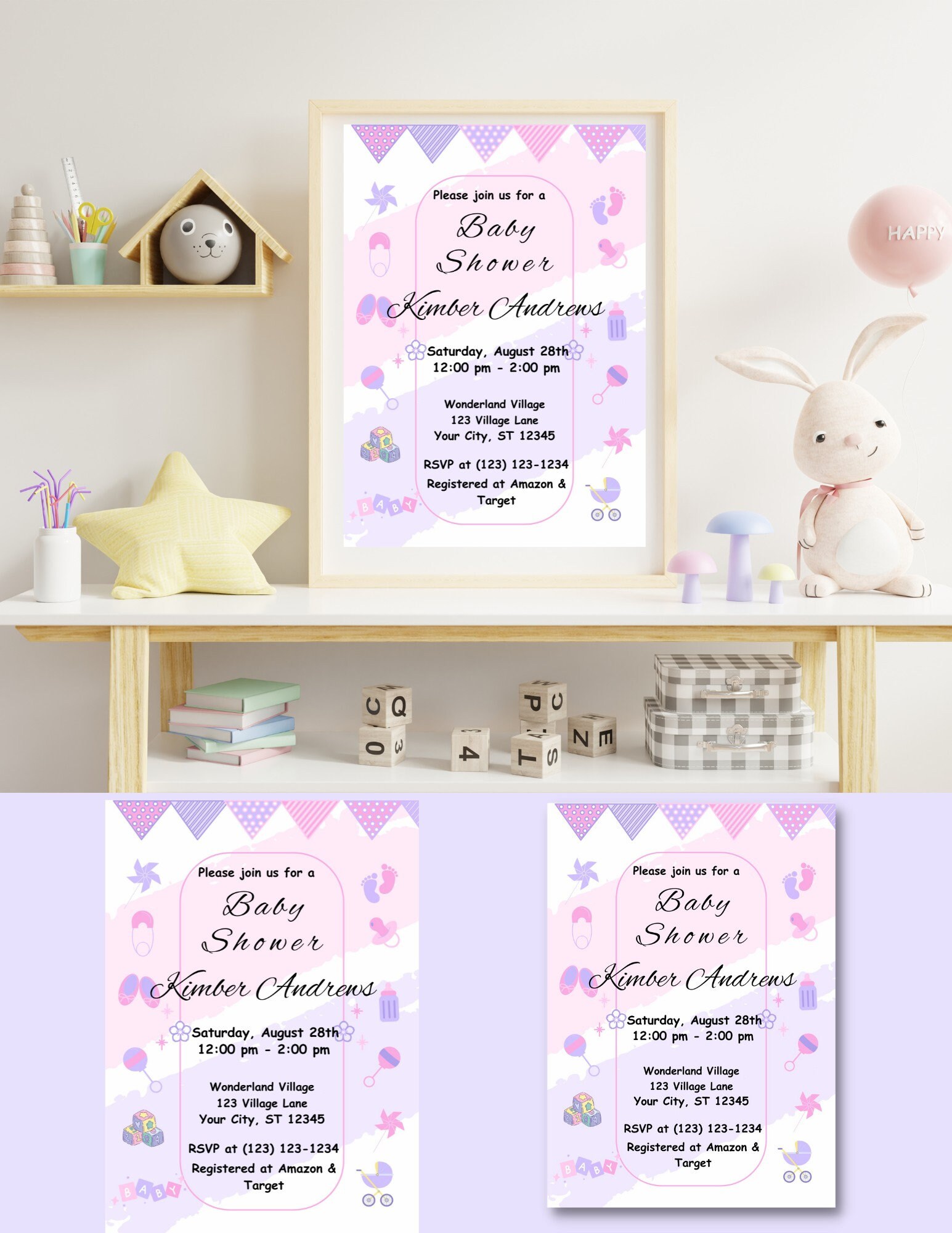 Baby Shower Modern Invitation Template Modern Pink Lavender Editable