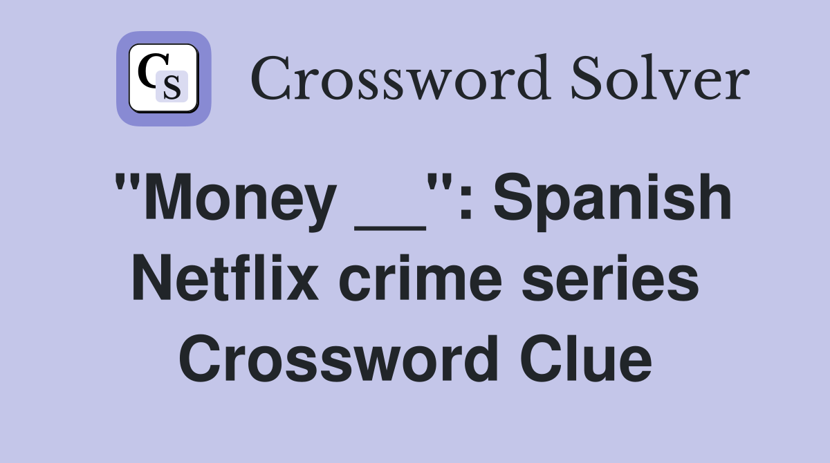 quot Money quot : Spanish Netflix crime series Crossword Clue Answers