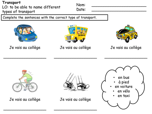 Transport worksheet (French) Teaching Resources