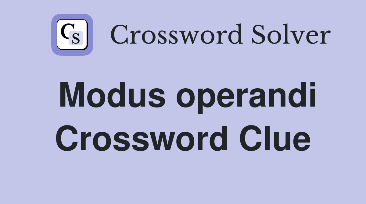 Here are some of the images for Modus Operandi Crossword Clue that we found in our website database.