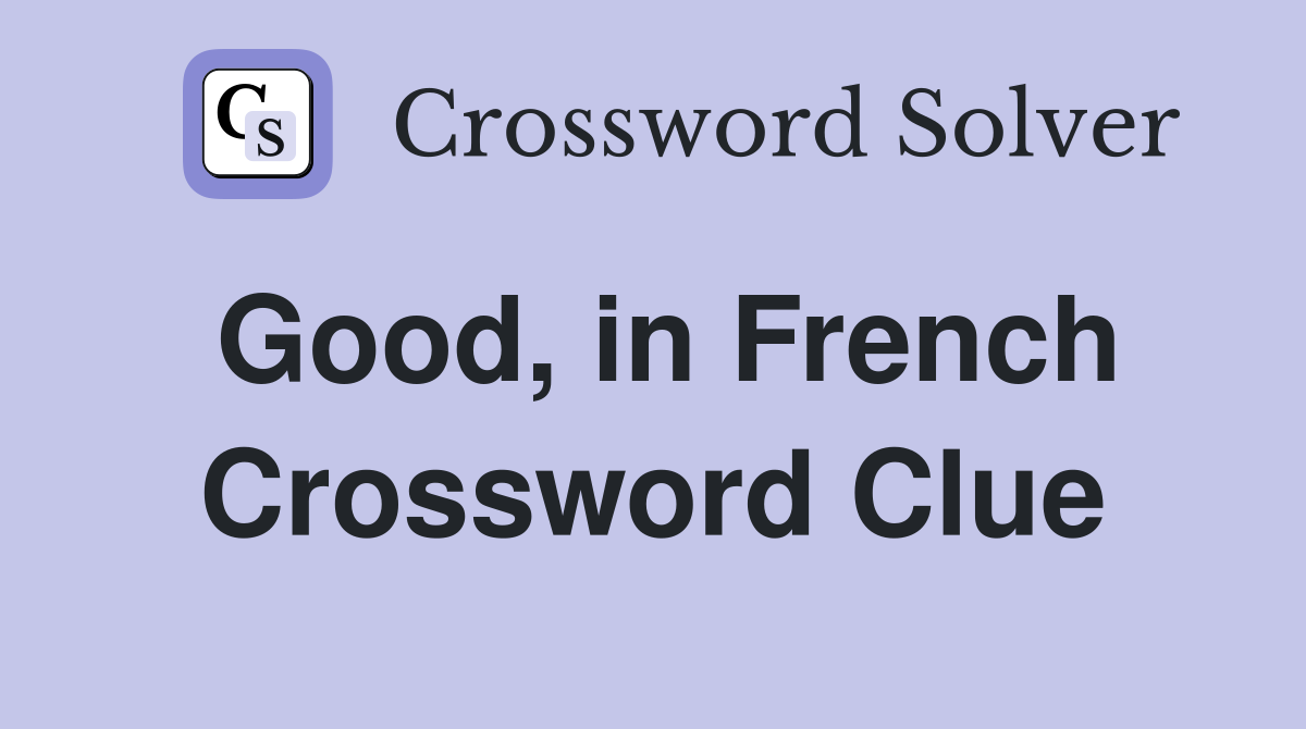Good in French Crossword Clue Answers Crossword Solver