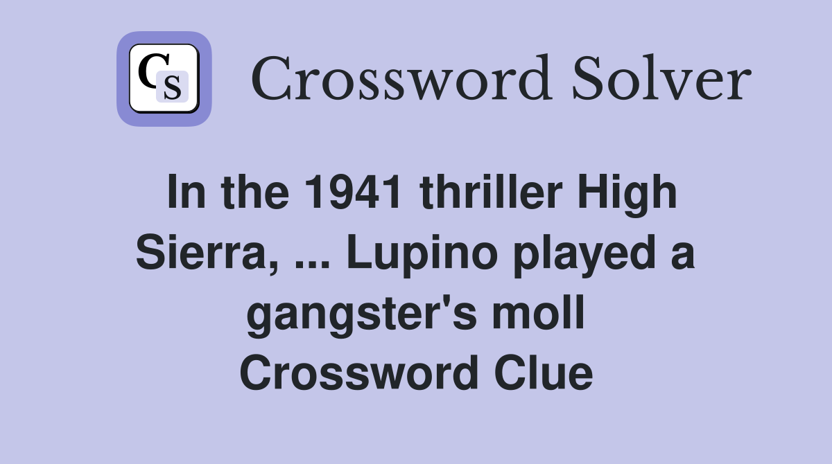 In the 1941 thriller High Sierra Lupino played a gangster #39 s moll