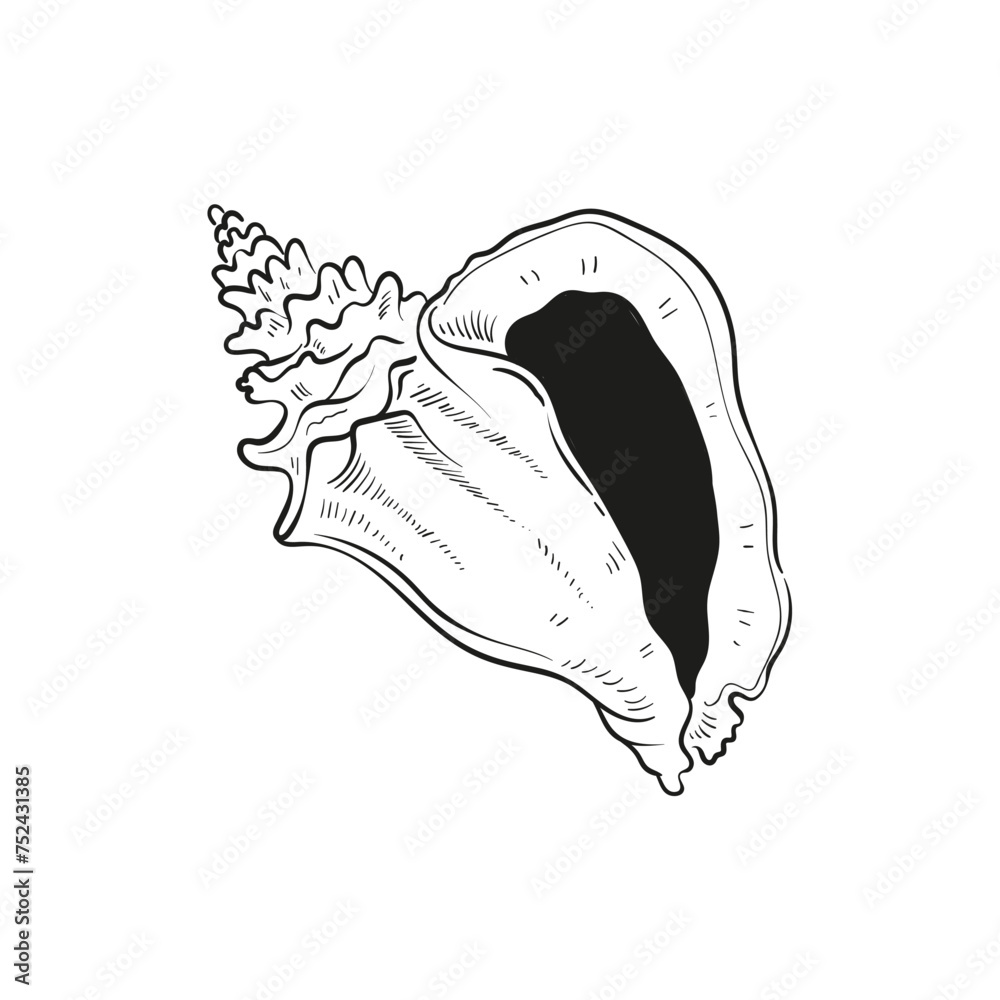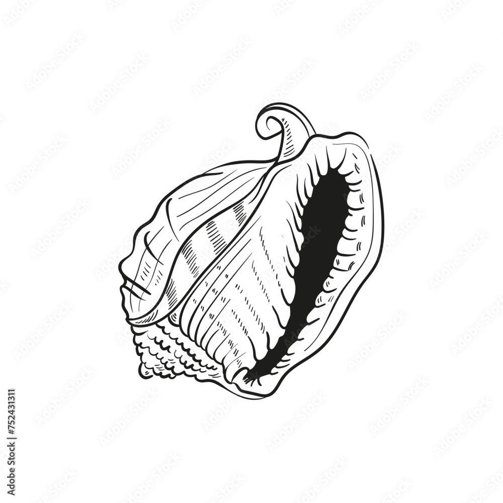 Hand drawn engraved line illustrations of realistic mollusk shells in