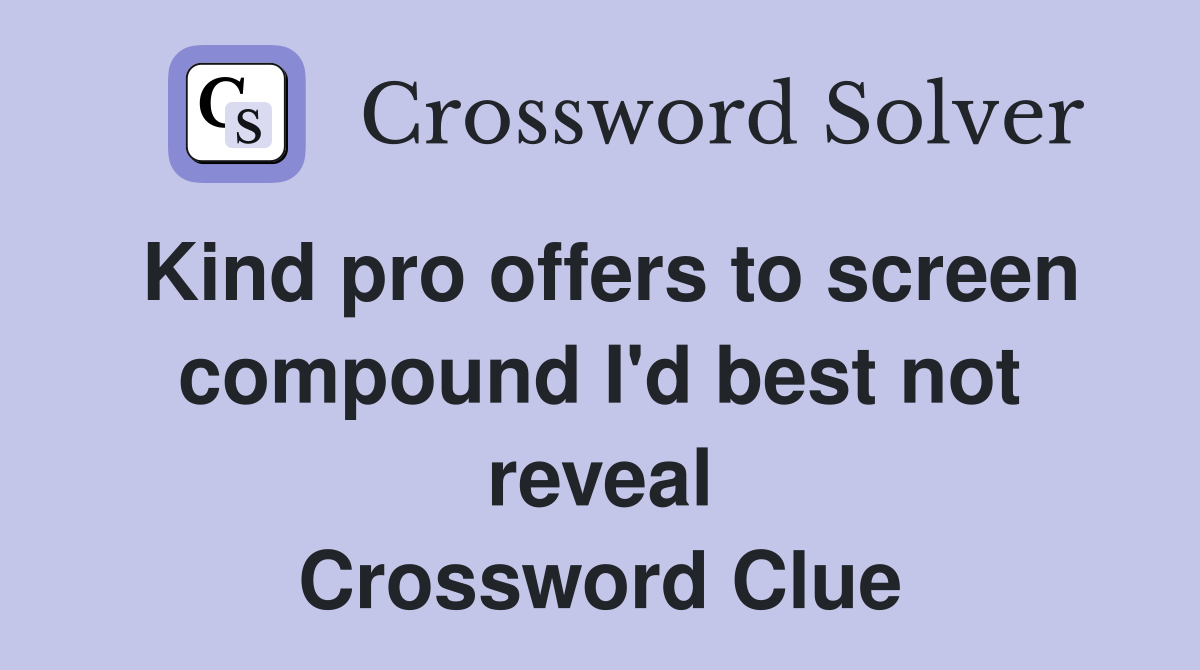 Kind pro offers to screen compound I #39 d best not reveal Crossword Clue
