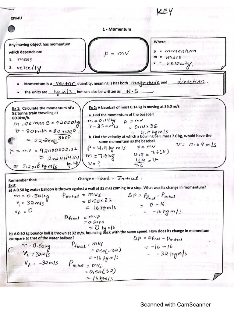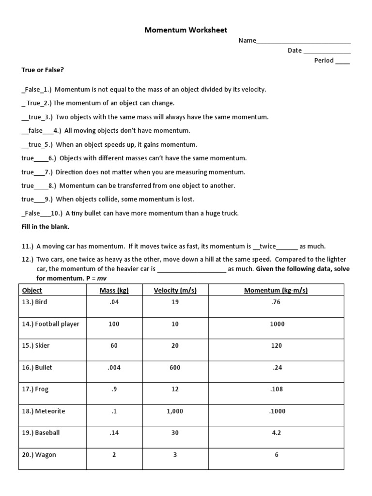 Momentum Worksheet With Answers Pdf