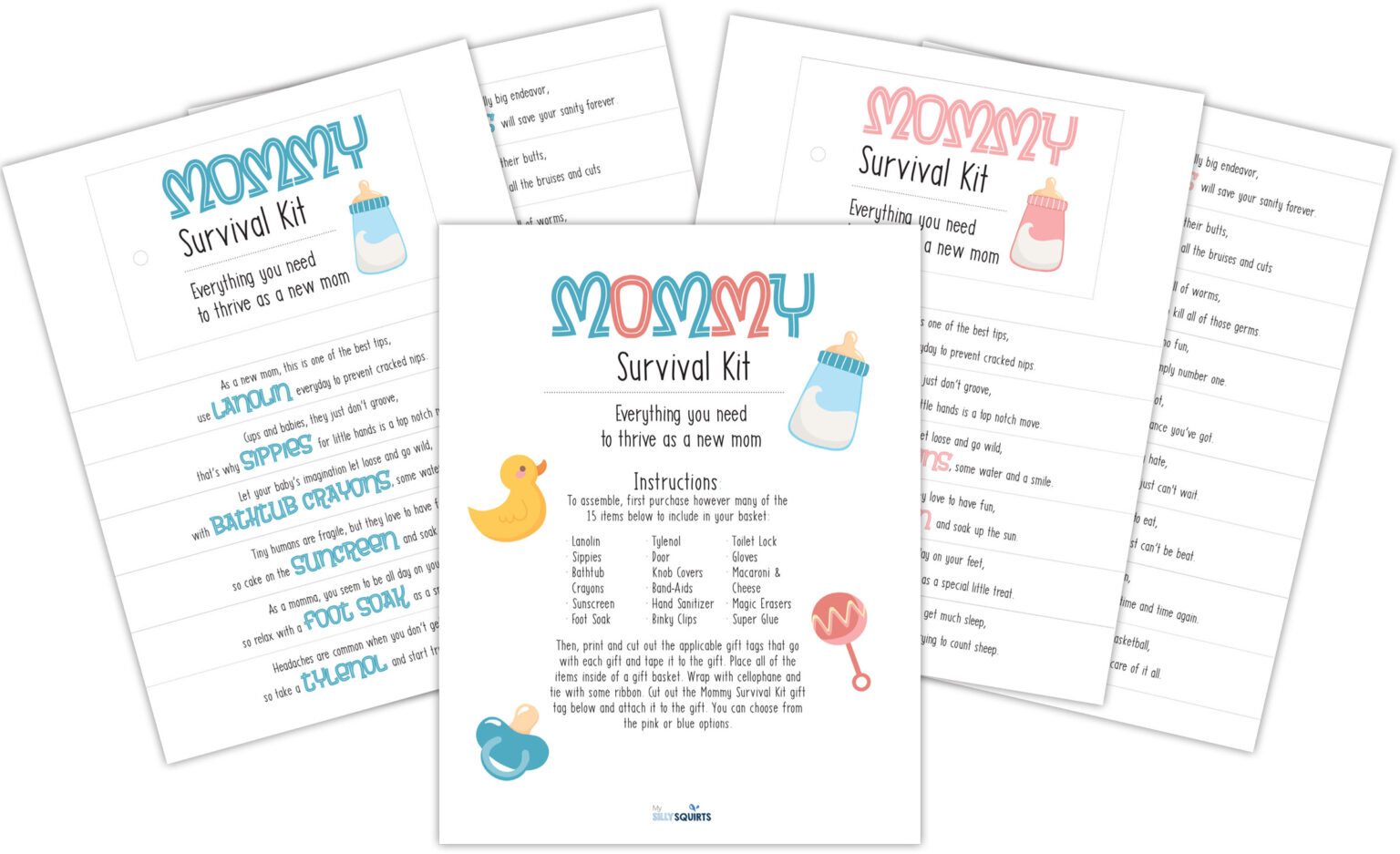 Mommy Survival Kit: the perfect baby shower gift printable tags