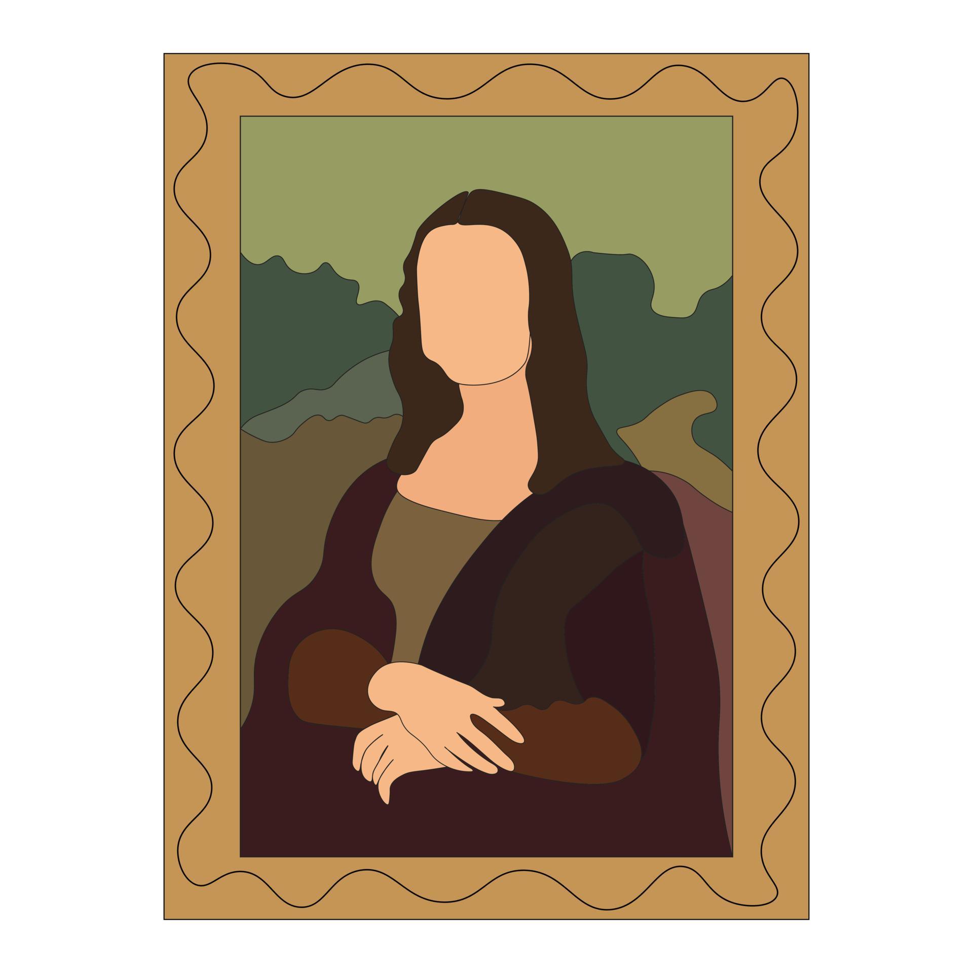 Linear flat illustration of portrait The Mona Lisa by Leonardo da Vinci