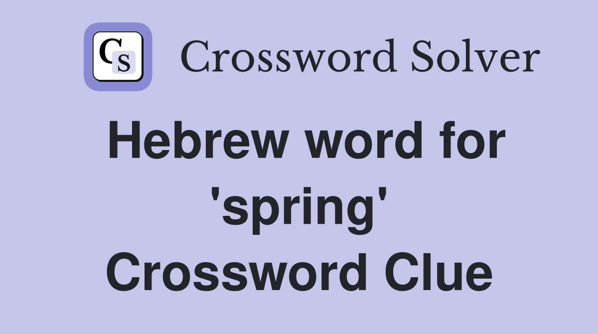 Hebrew word for #39 spring #39 Crossword Clue Answers Crossword Solver