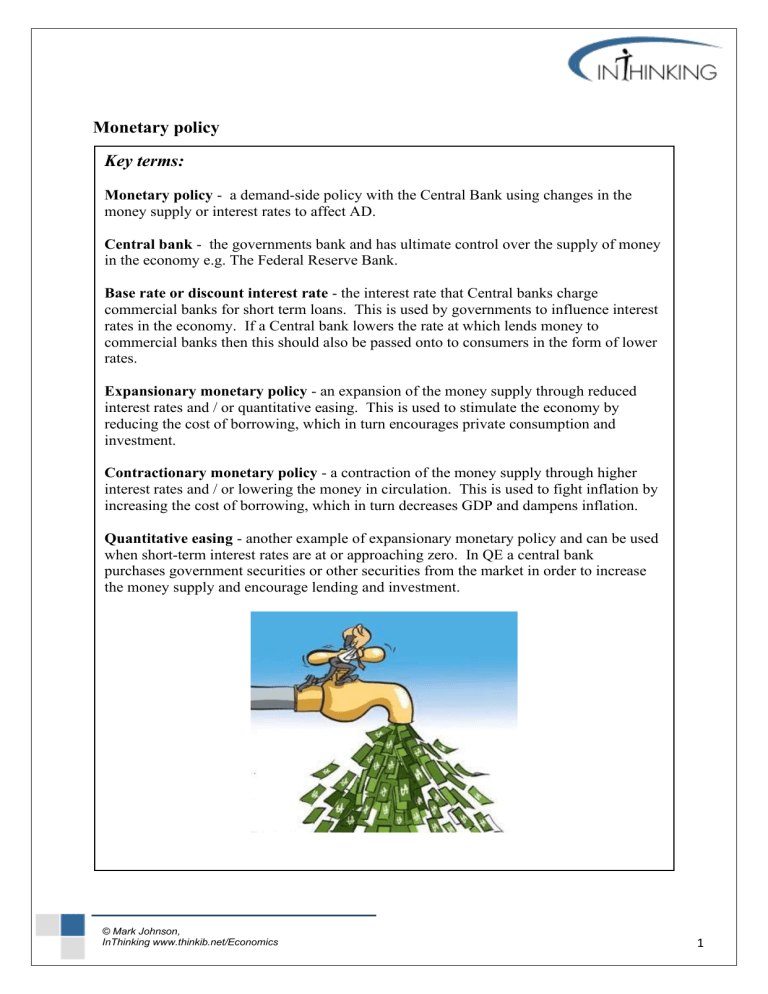 Monetary Policy Worksheet PDF Inflation Monetary Policy