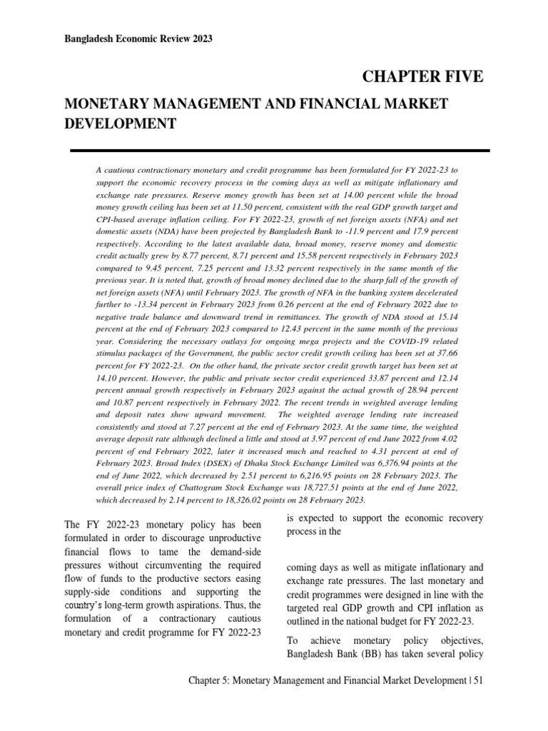 Bangladesh Economic Review Chapter 5 PDF Money Supply Monetary