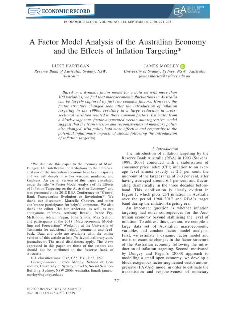 Hartigan Morley ER 2020 PDF Monetary Policy Inflation