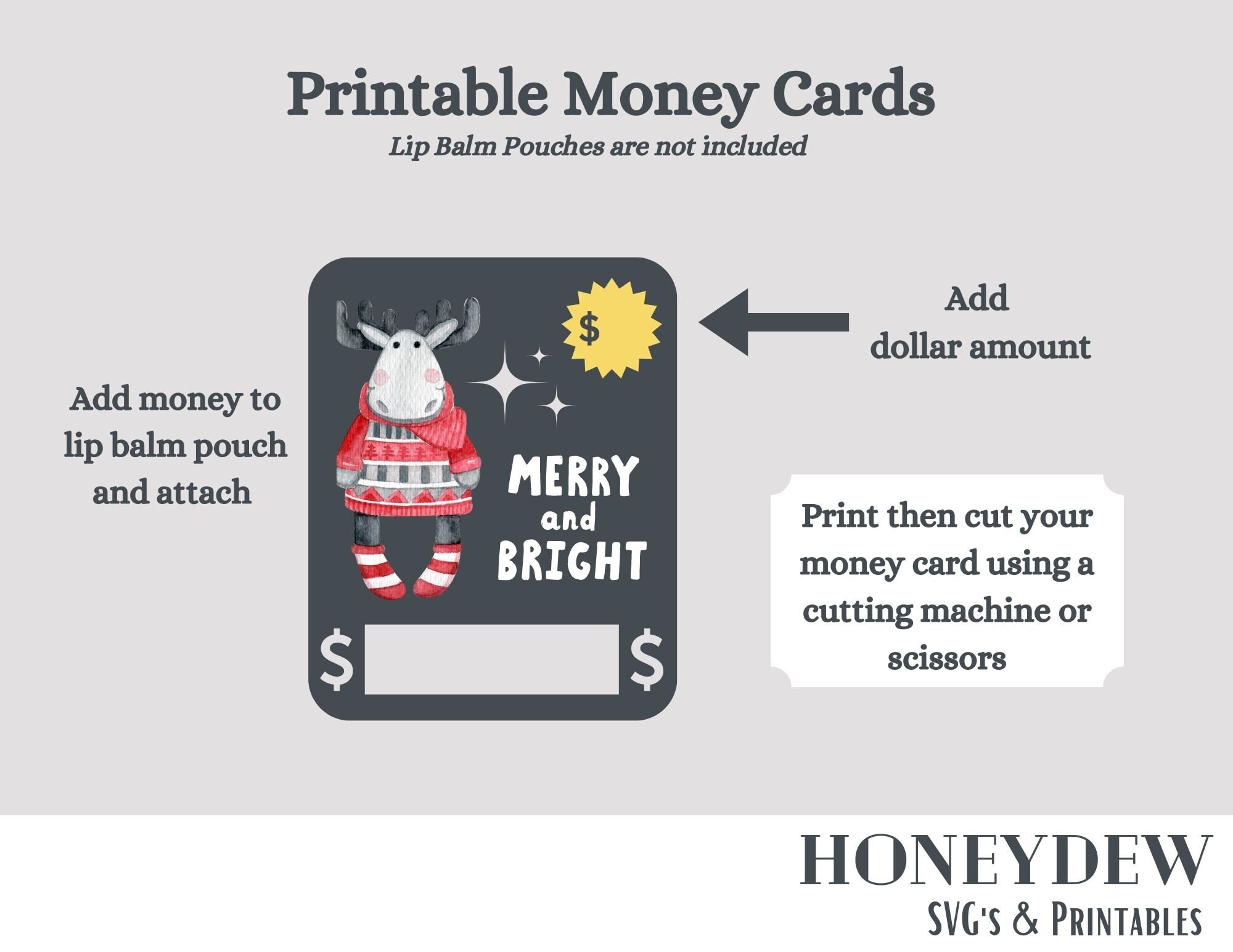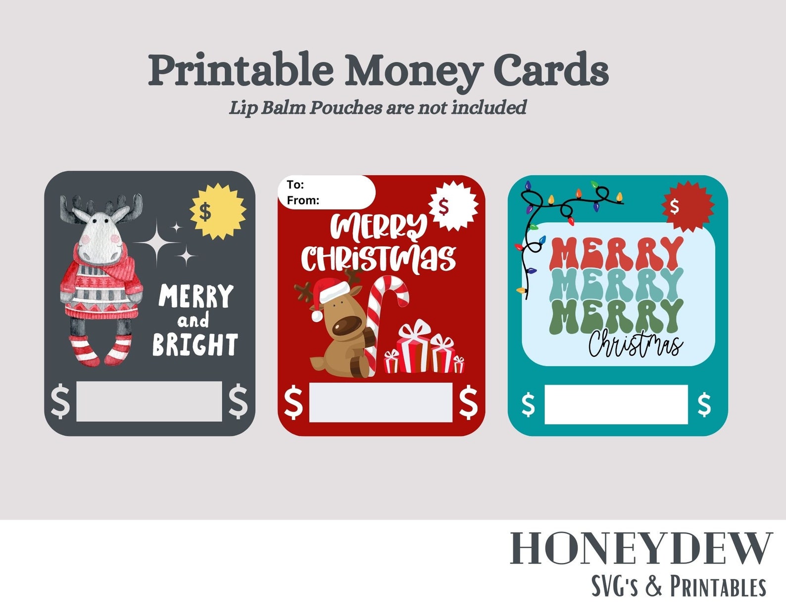 Christmas Printable Money Card Template Bundle Holiday Lip Balm Pouch