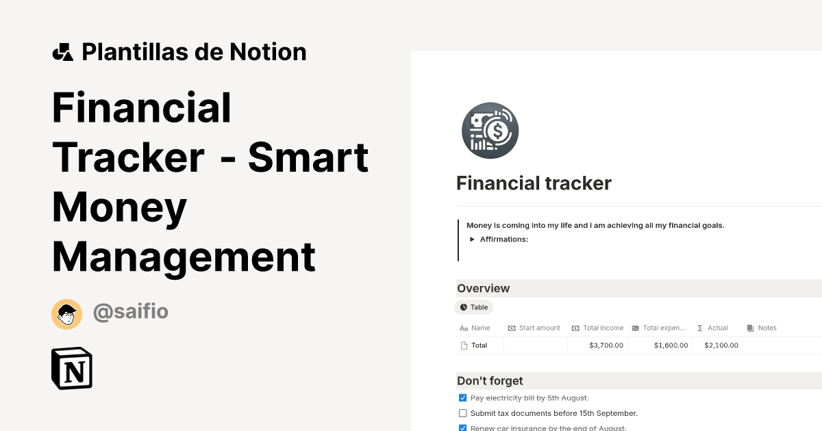 Plantilla Financial Tracker Smart Money Management Notion Marketplace