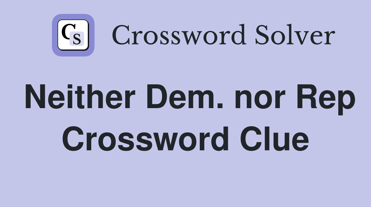 Neither Dem nor Rep Crossword Clue Answers Crossword Solver