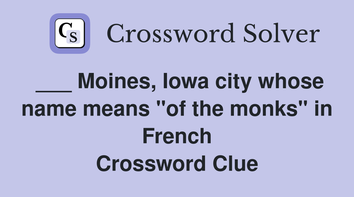 Moines Iowa city whose name means quot of the monks quot in French Crossword