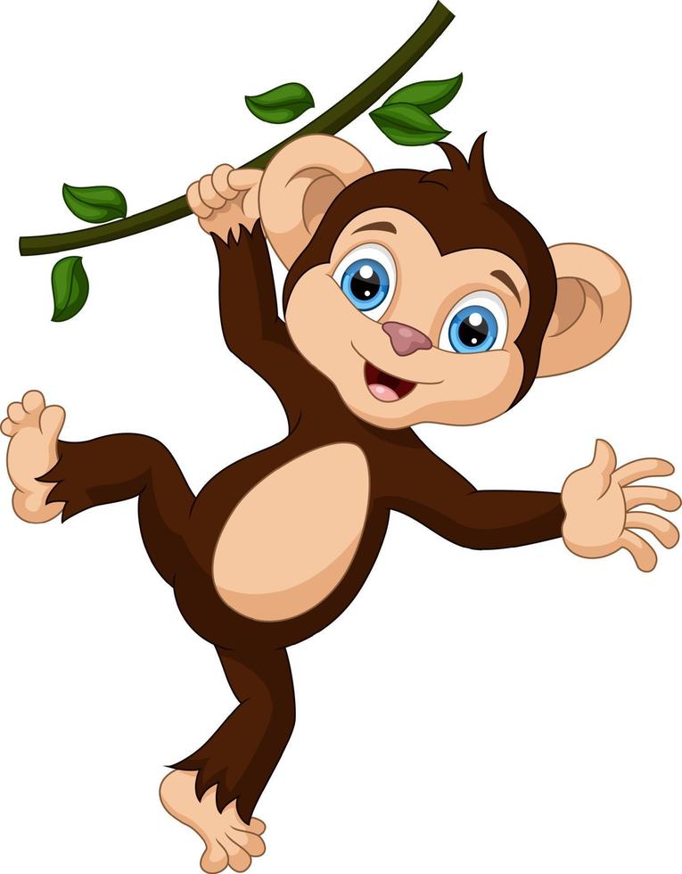 linda mono dibujos animados colgando en árbol rama 22714096 Vector en