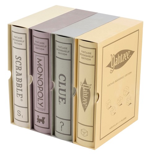 Scrabble Monopoly Clue and Yahtzee Vintage Board Game Bookshelf
