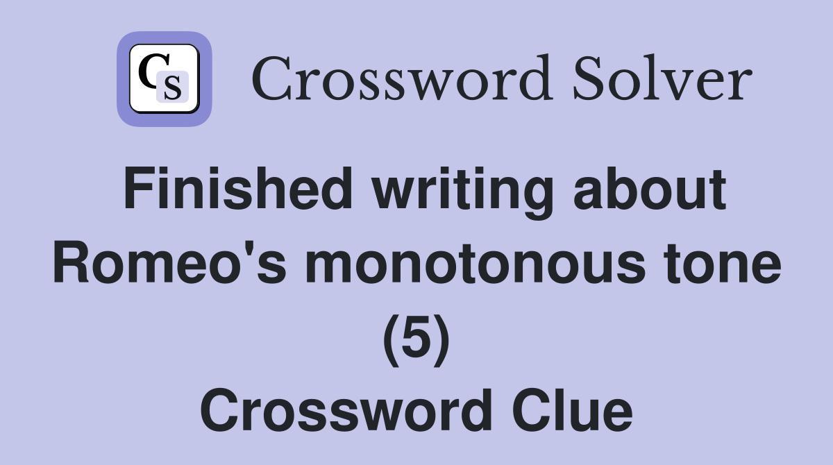 Finished writing about Romeo #39 s monotonous tone (5) Crossword Clue
