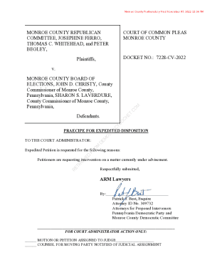 Fillable Online in the court of common pleas of monroe county