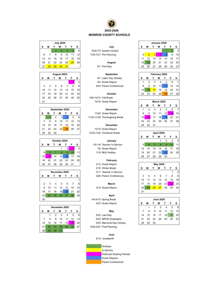 Monroe County Schools Calendar 25 26 PDF EduCounty