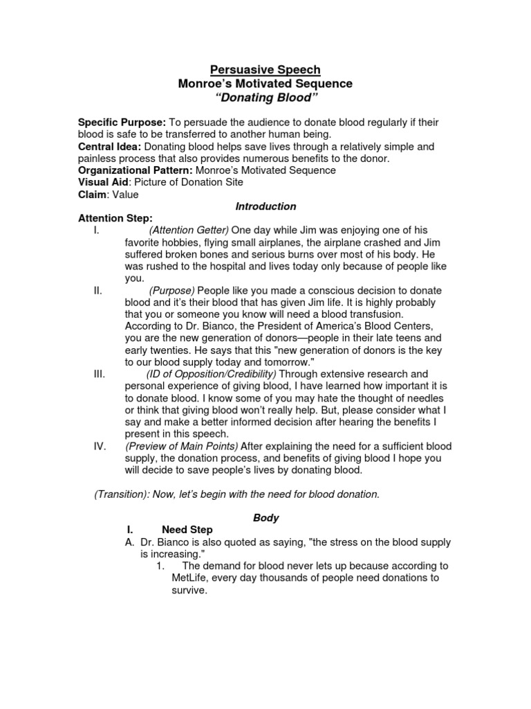 Monroe #39 s Motivated Sequence Persuasive Speech Skeletal Outline