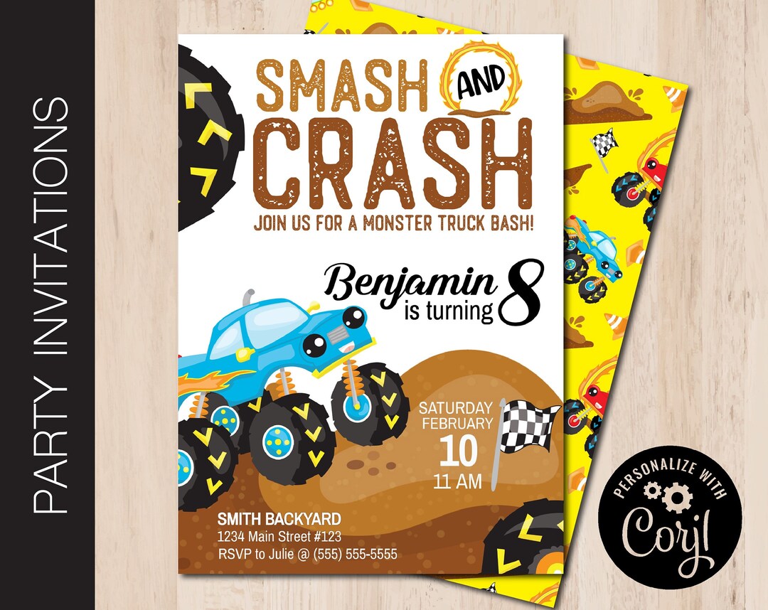 Monster Truck Birthday Party Invitation Printable Template Editable