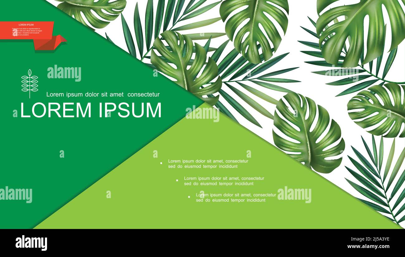 Realistic green tropical plants template with natural beautiful