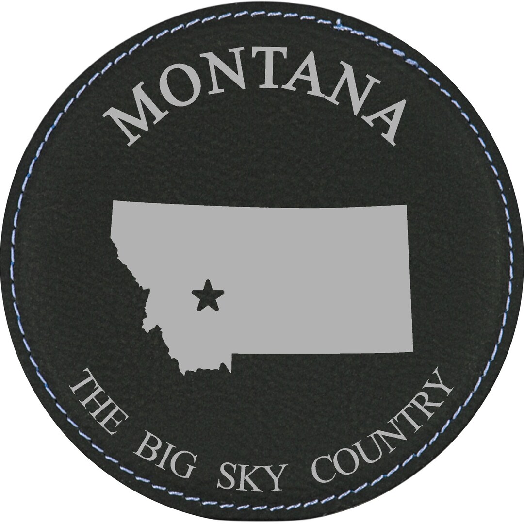 Montana State Outline With Motto 4 Round Leather 6 coaster Set With