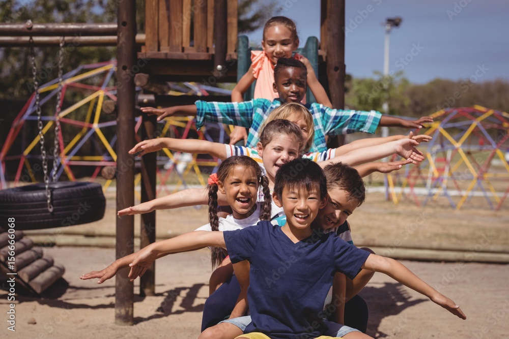Happy schoolkids playing in playground Stock Photo Adobe Stock
