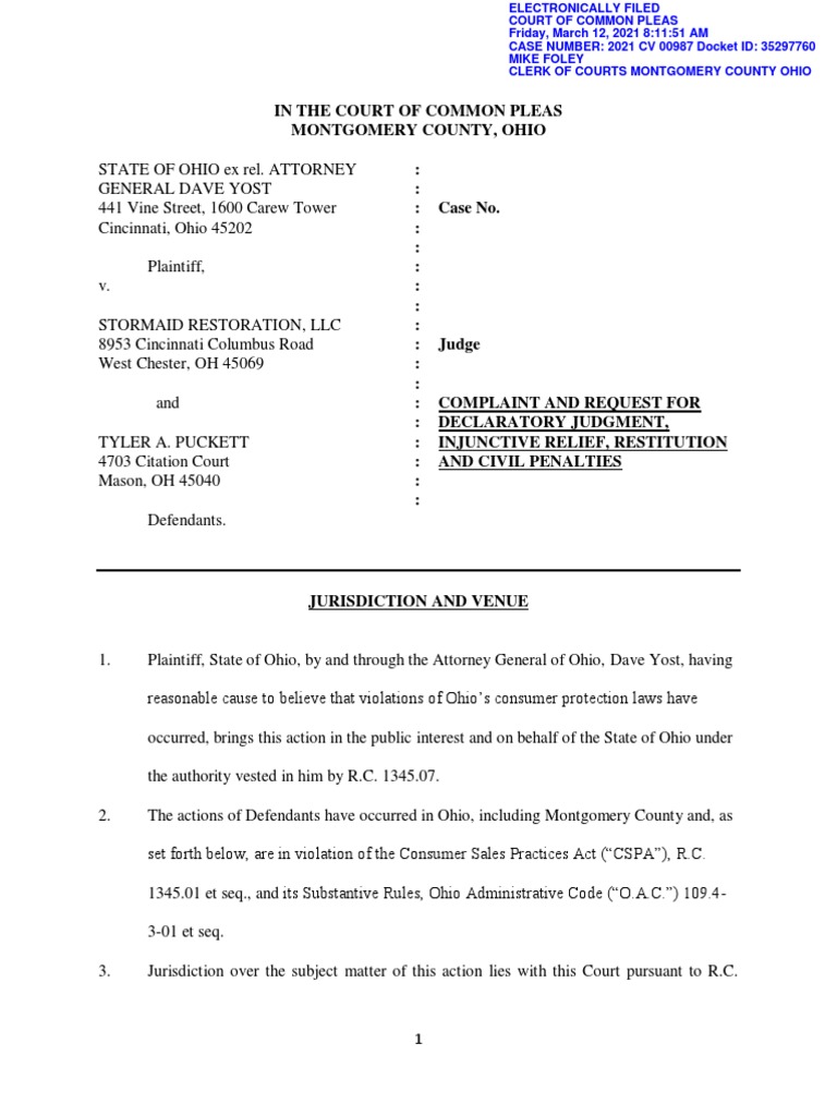 In The Court of Common Pleas Montgomery County Ohio