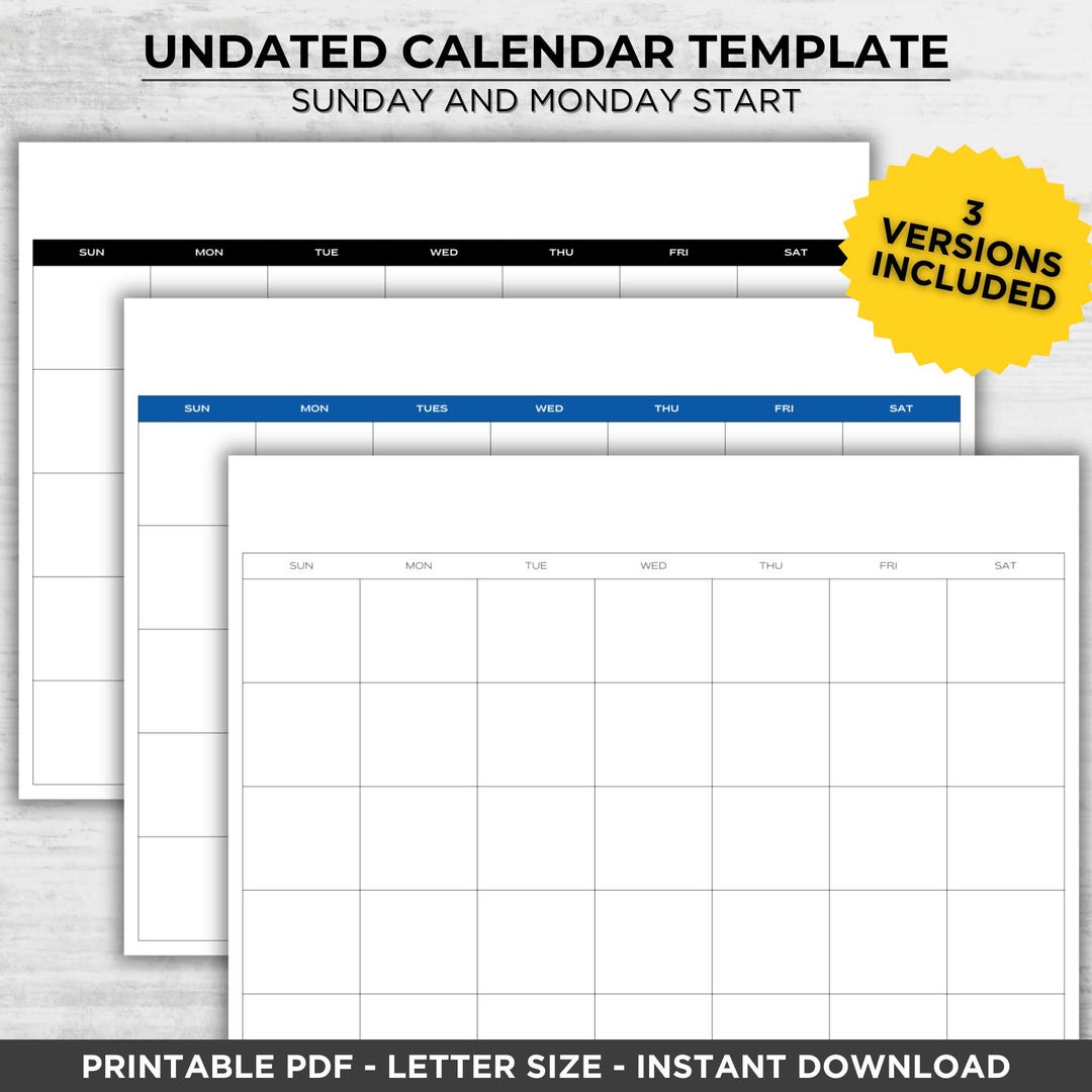 Printable Blank Monthly Calendar Undated Calendar Month at a Etsy