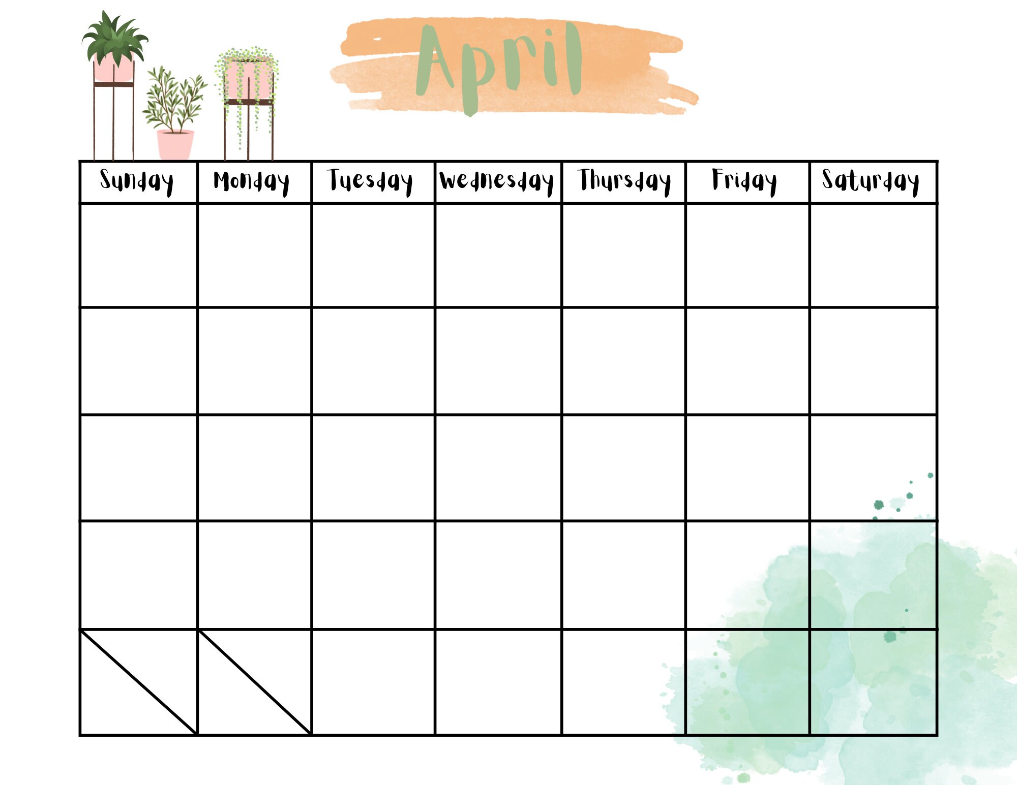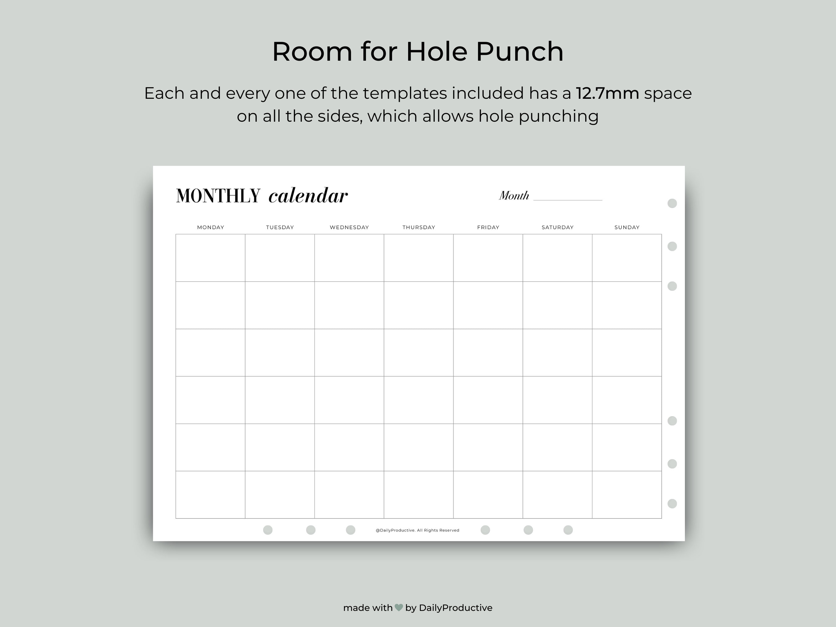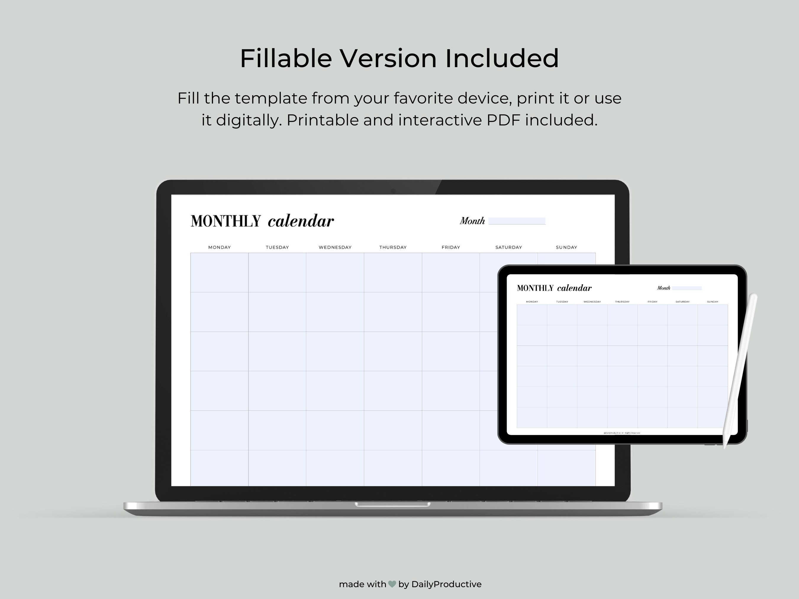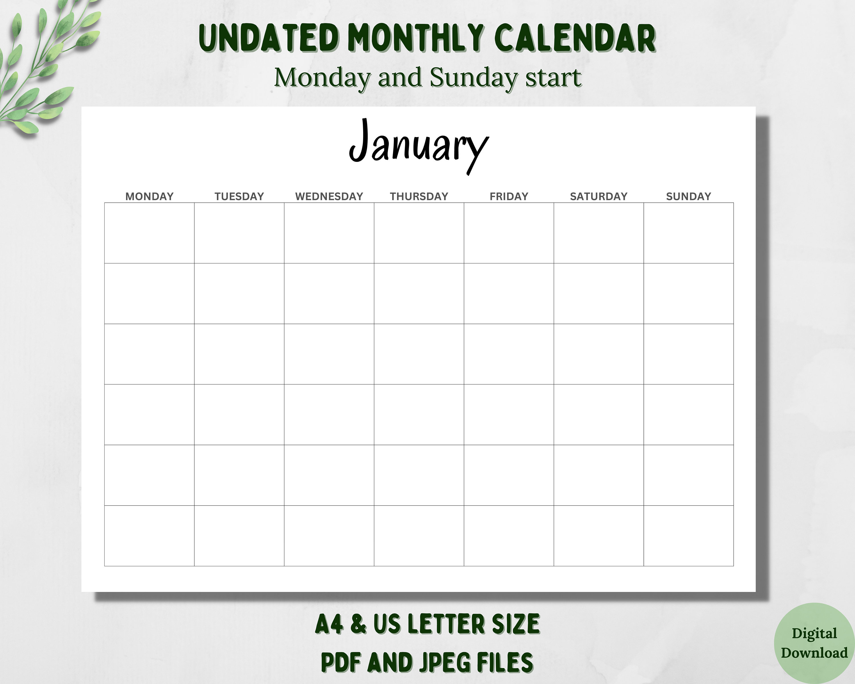 Printable Blank Monthly Calendar (undated) Etsy