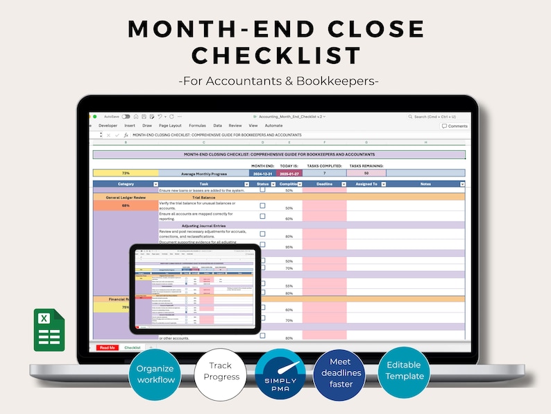 Month end Closing Checklist Excel Template for Bookkeepers (digital