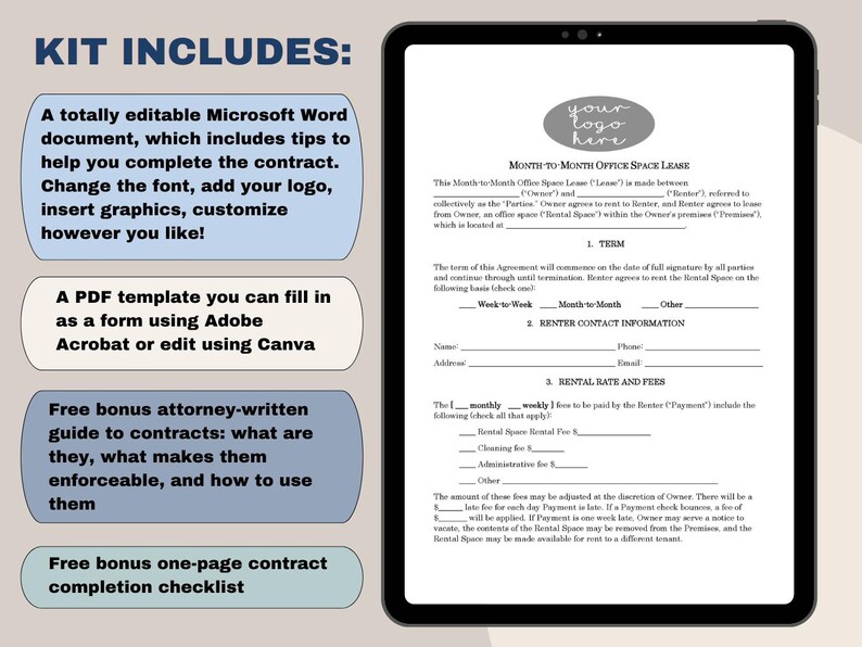 Month to month Commercial Lease Template Attorney drafted Editable