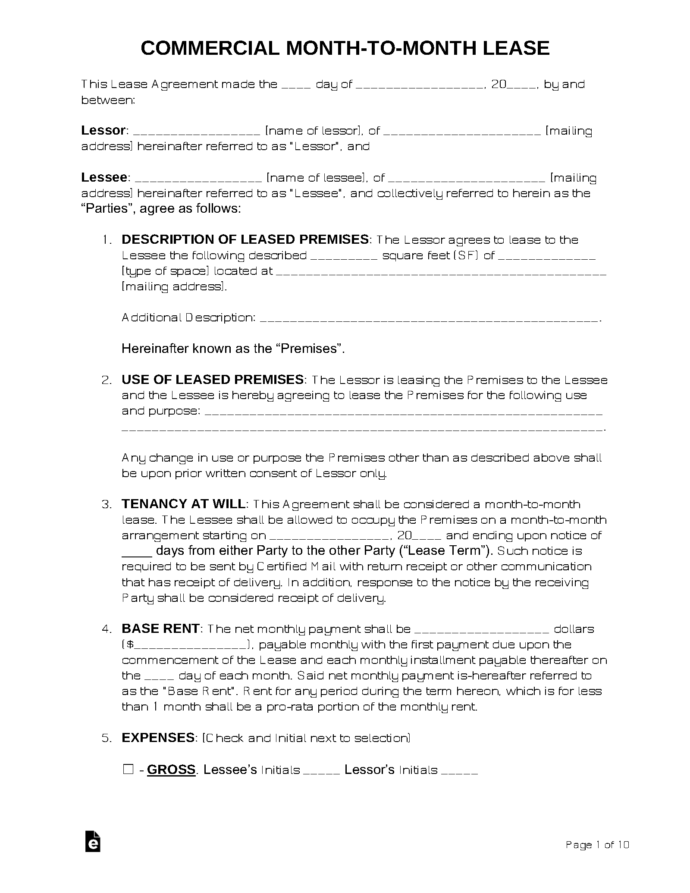 Commercial Month To Month Lease Agreement Template
