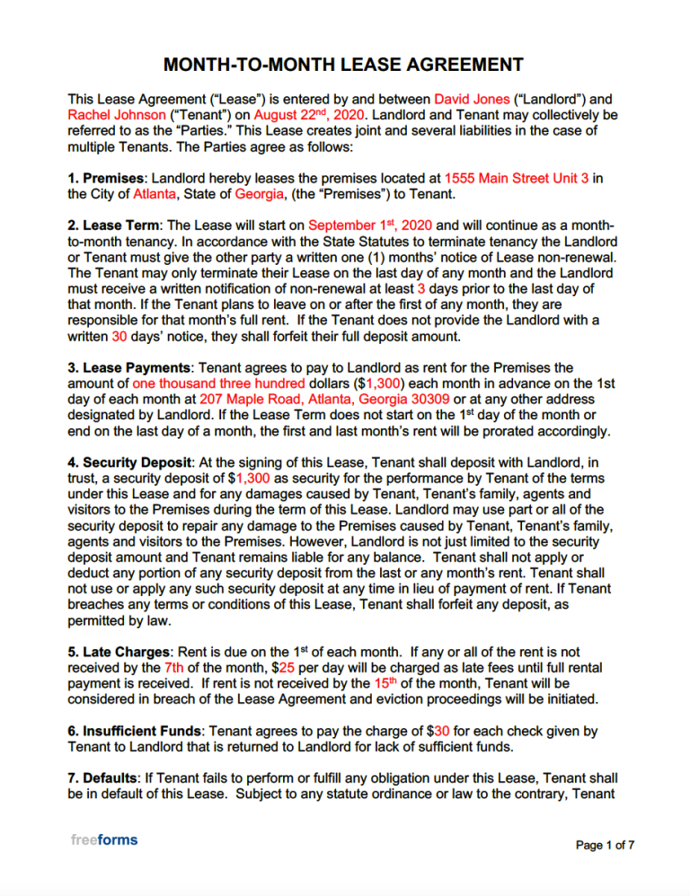Free Month To Month Lease Agreement Template Printable Forms Free Online