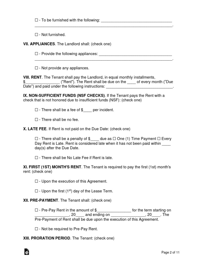 Editable Month to Month Rental Agreement Residential Lease Agreement