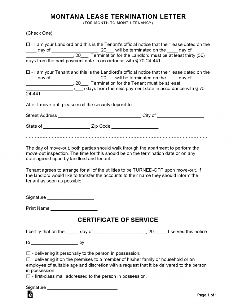Free Montana Month to Month Lease Termination Letter PDF WORD RTF