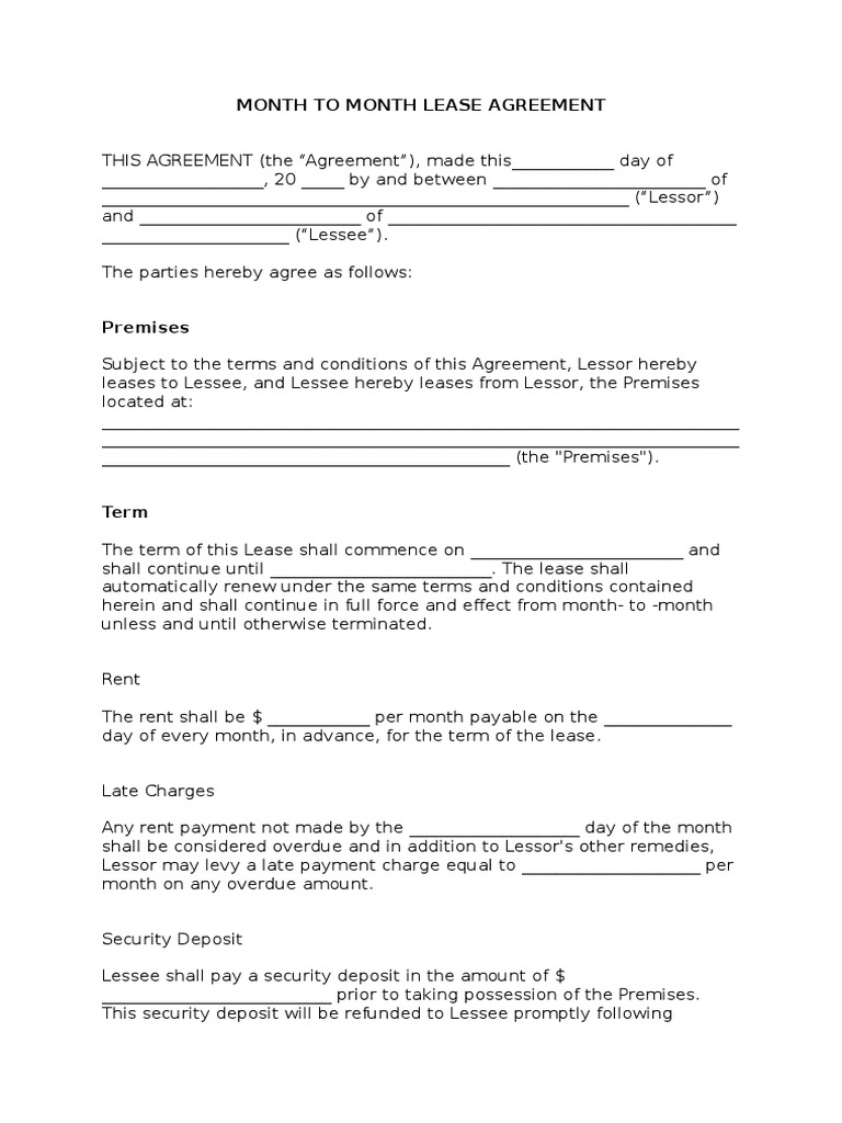 Month To Month Lease Agreement Template