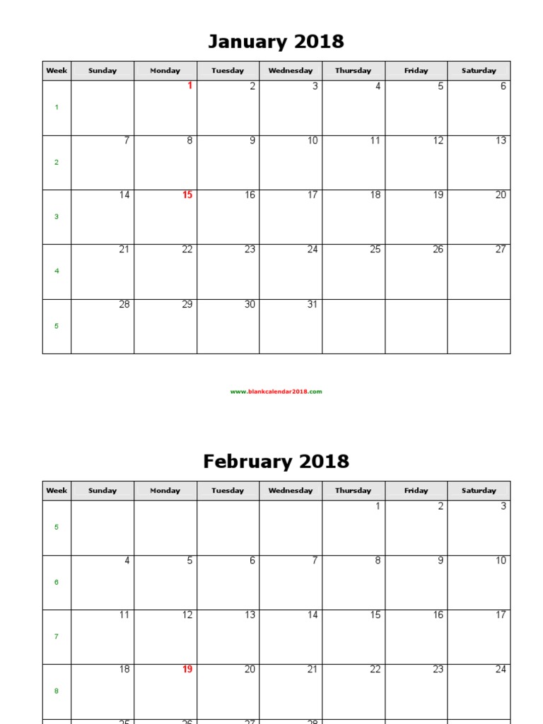 2018 Monthly Calendar (Blank Vertical Template) Free calendar