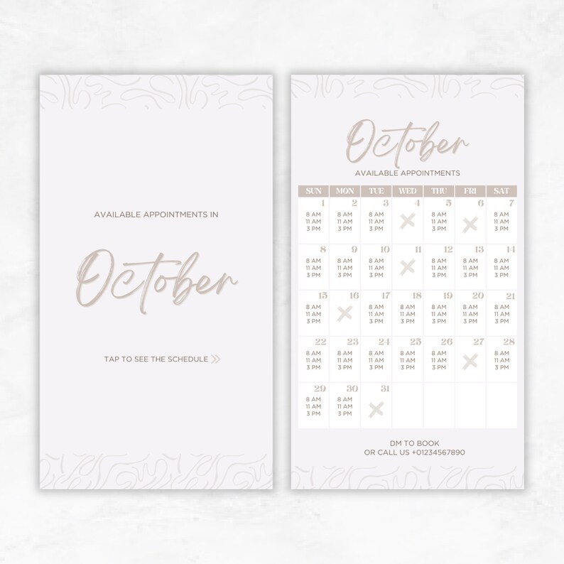 Monthly Availability Calendar Instagram Story Instagram Story Schedule
