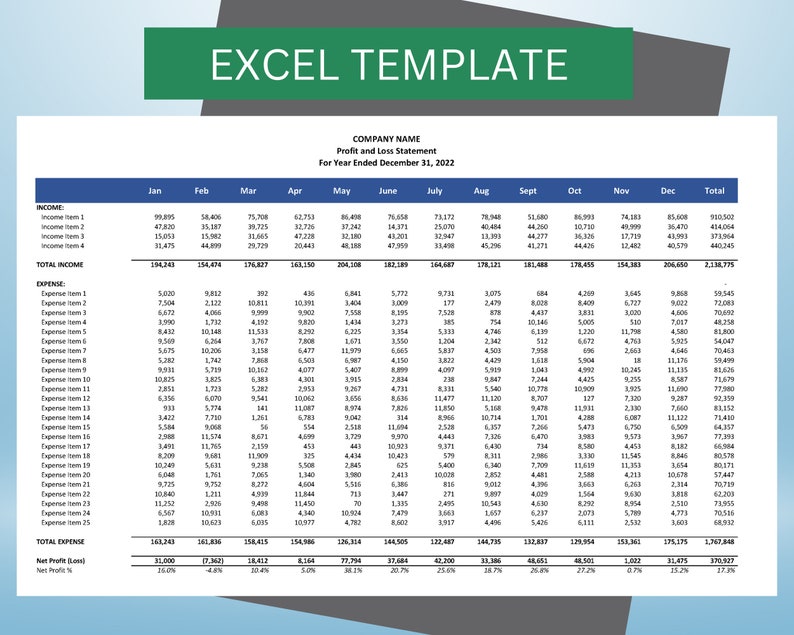 Monthly Balance Sheet Template Excel Business Templates Etsy