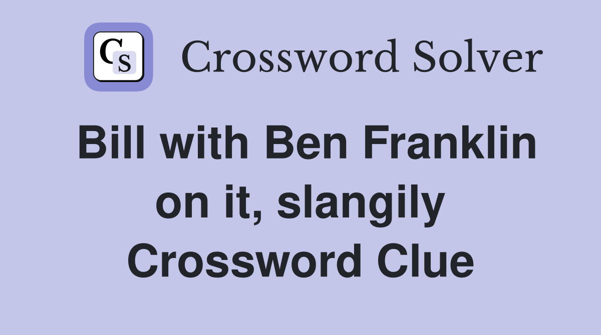 Bill with Ben Franklin on it slangily Crossword Clue Answers