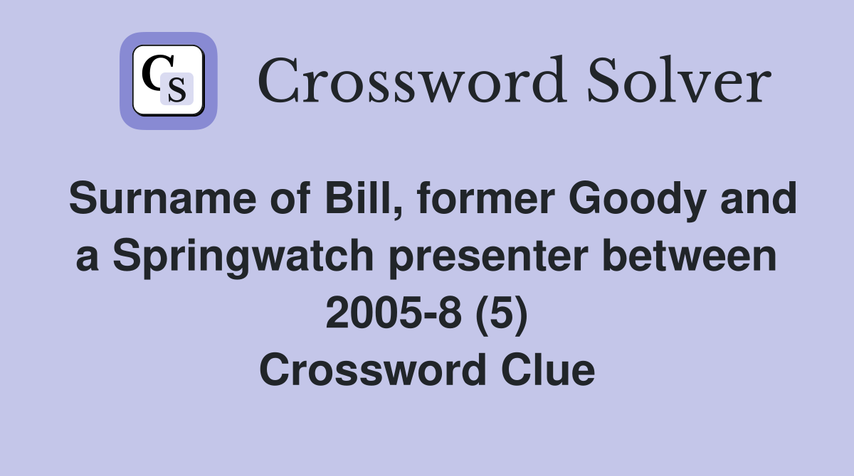 Surname of Bill former Goody and a Springwatch presenter between 2005