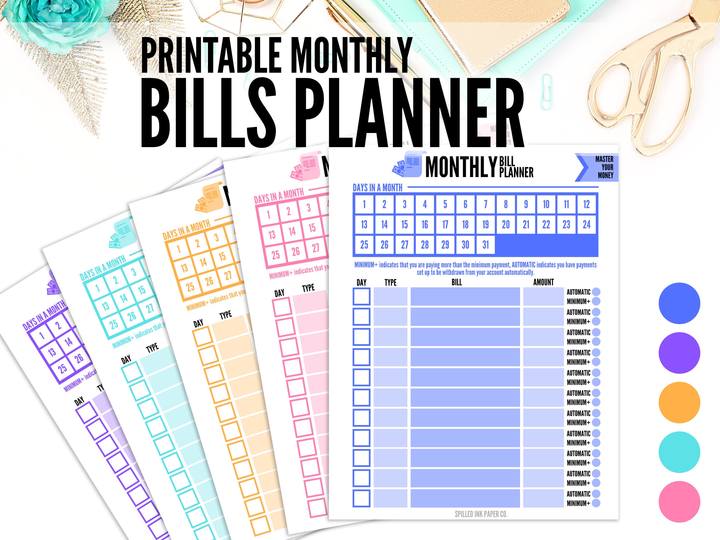 Monthly Bills Planner Printable Bills Tracker Monthly Dates
