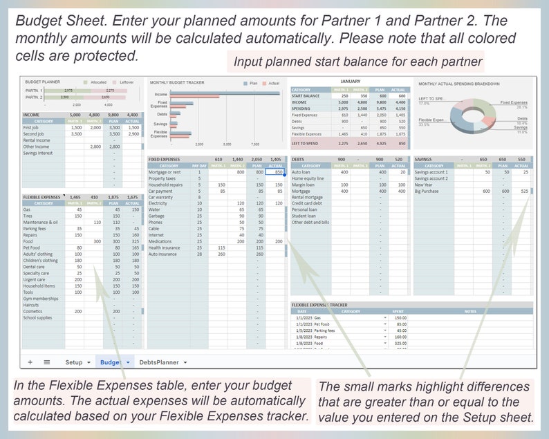 Budget for Couples Spreadsheet Monthly Planner Template Google Sheets