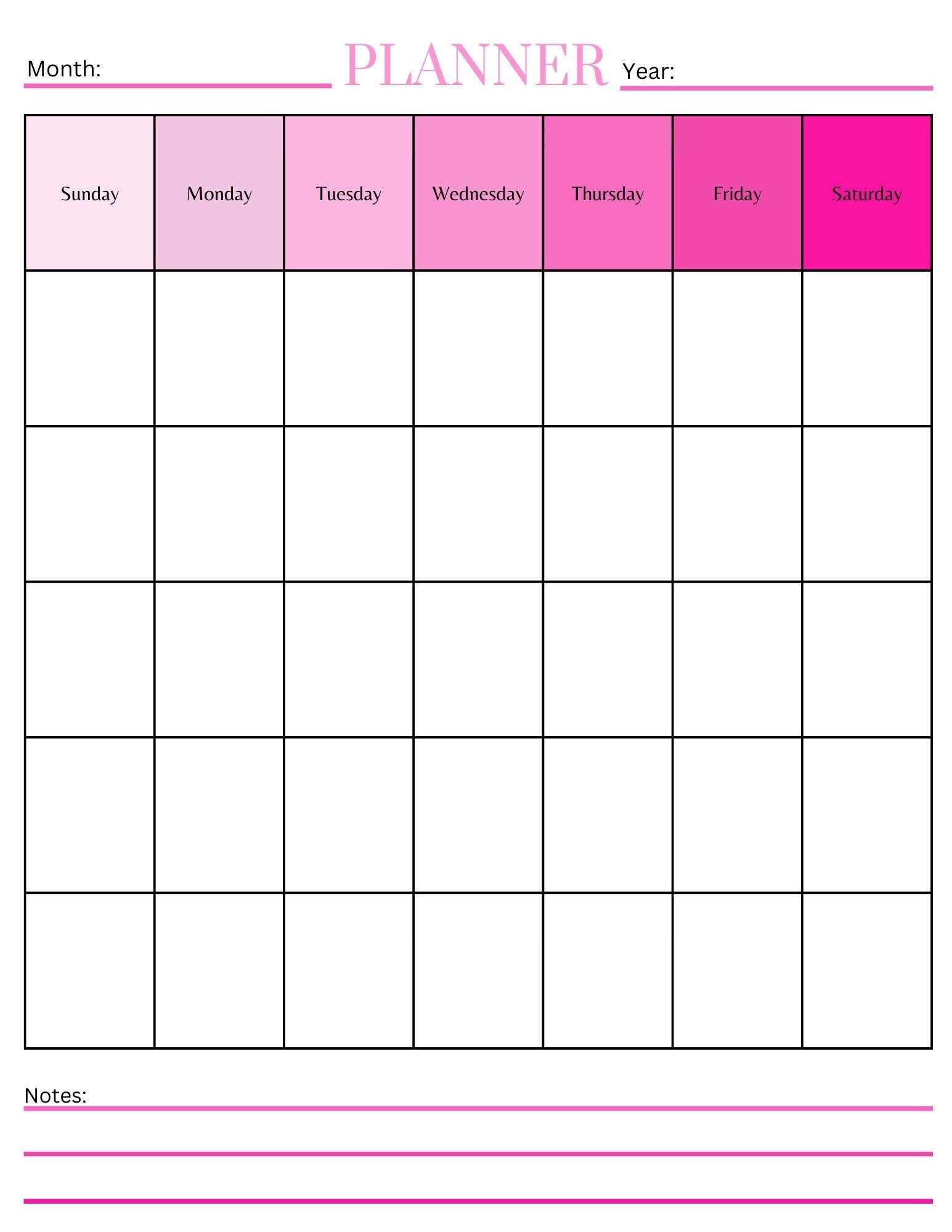 Monthly Calendar Planner Printable PDF color Undated Etsy