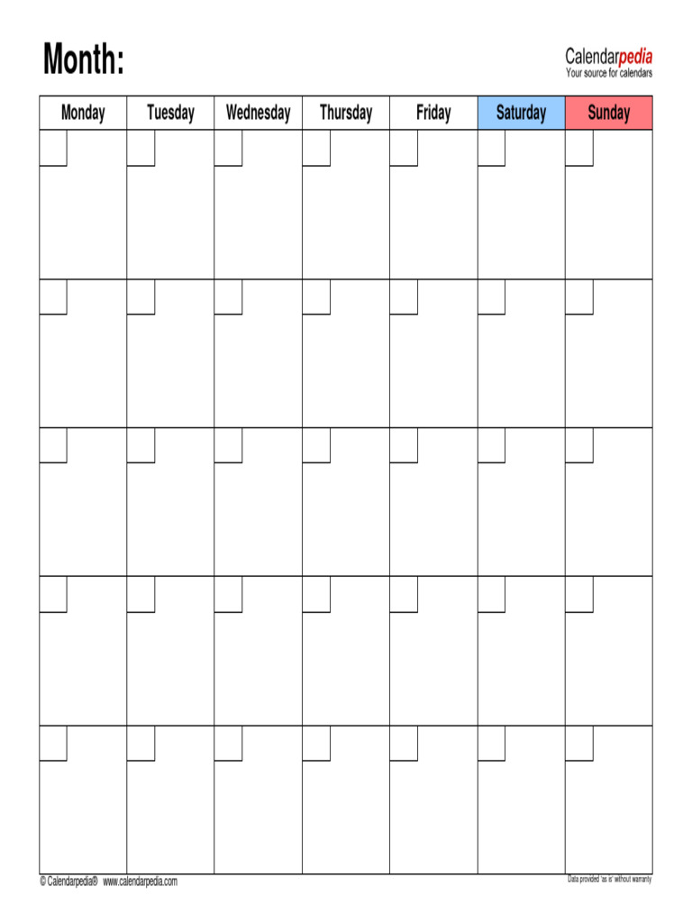Free Printable Large Blank Calendar Template for Easy Planning