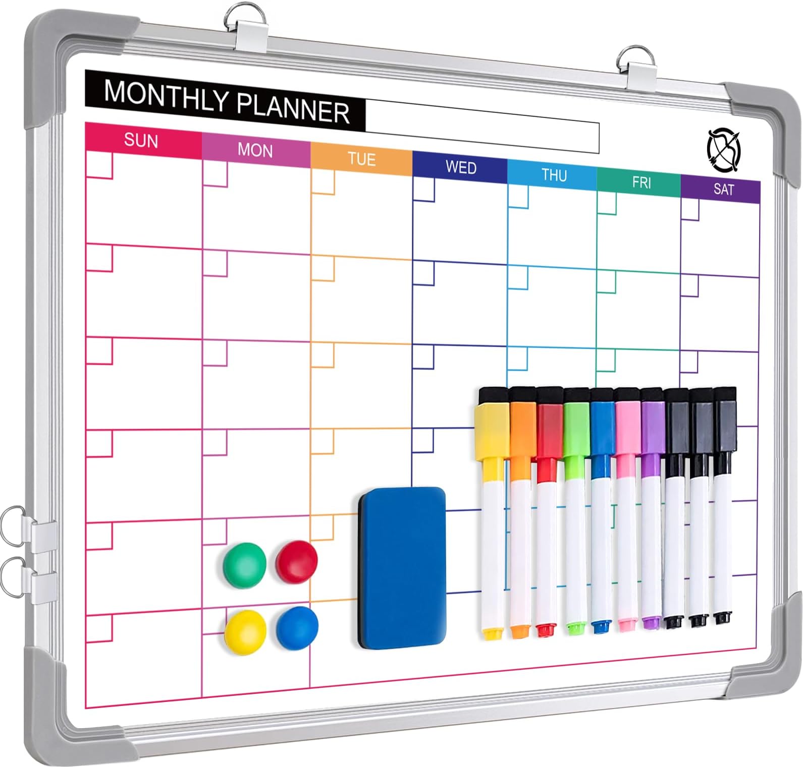 QUEENLINK Magnetic Whiteboard Monthly Calendar Double Sided White Board