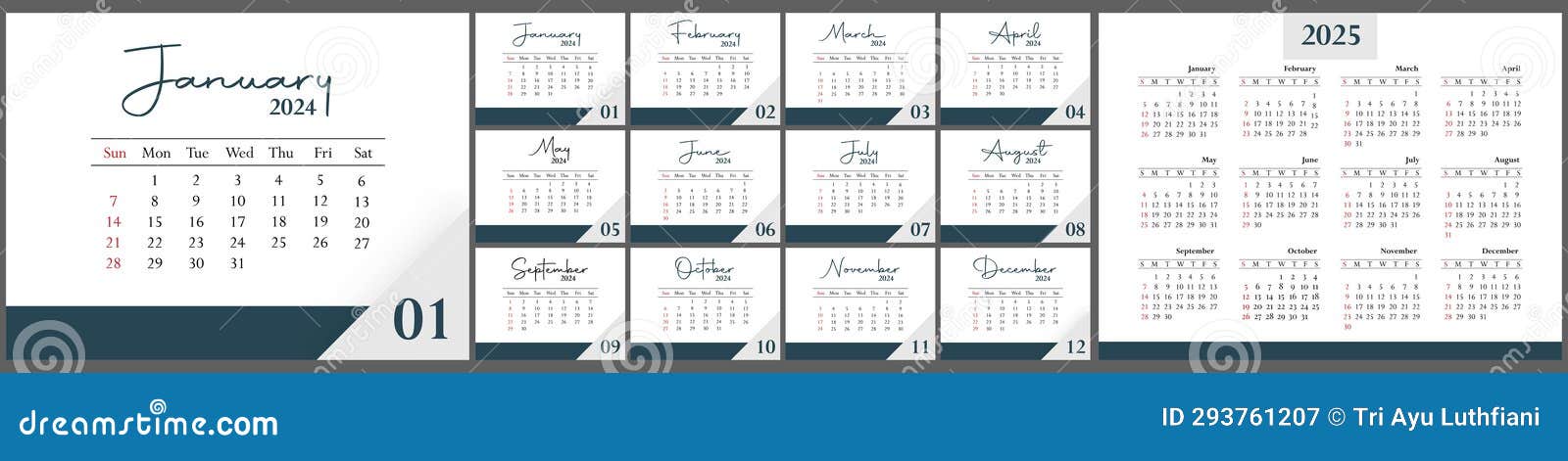 Monthly Calender 2024 Minimalist Corporate Design Template for Desk
